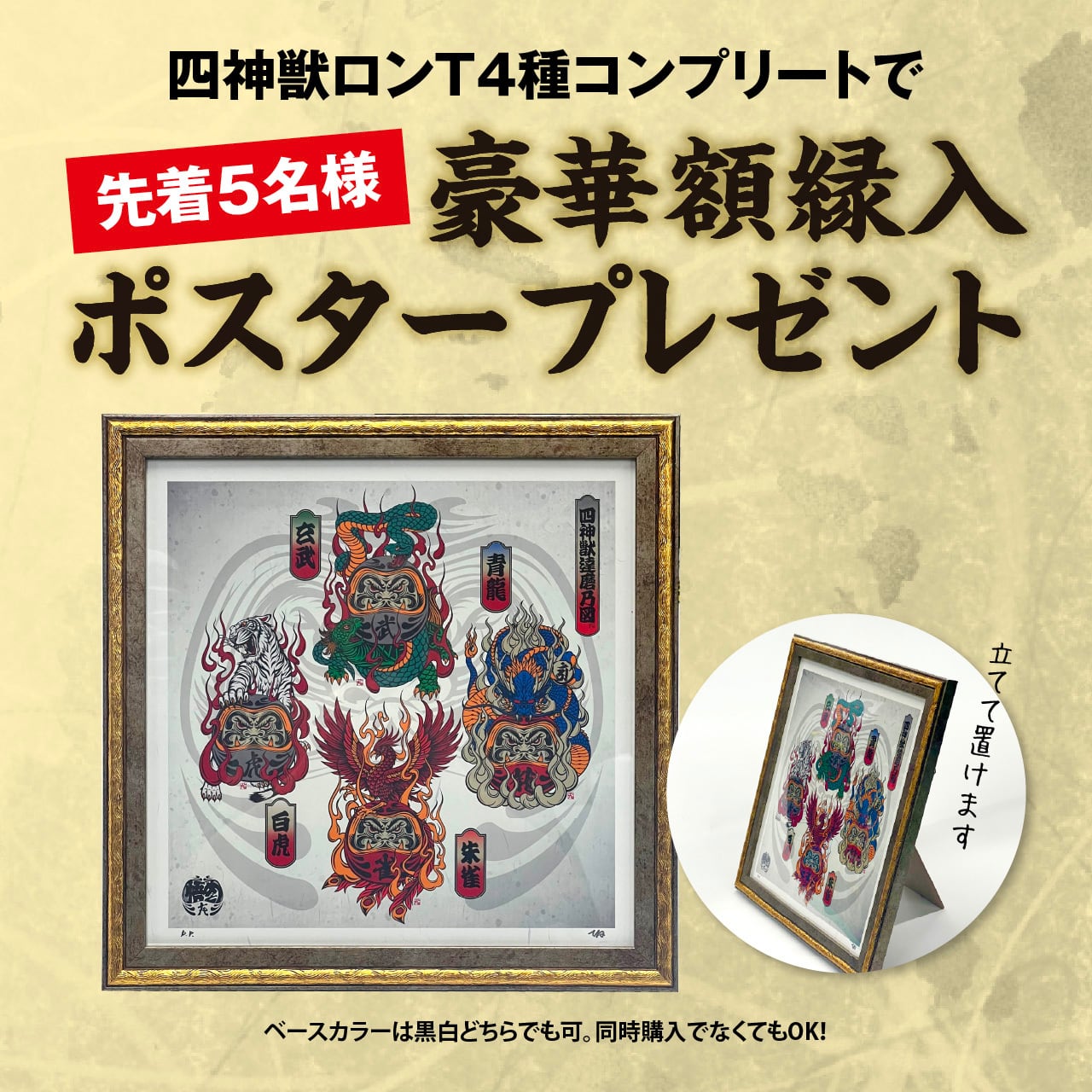 白虎達磨 長袖Tシャツ 白