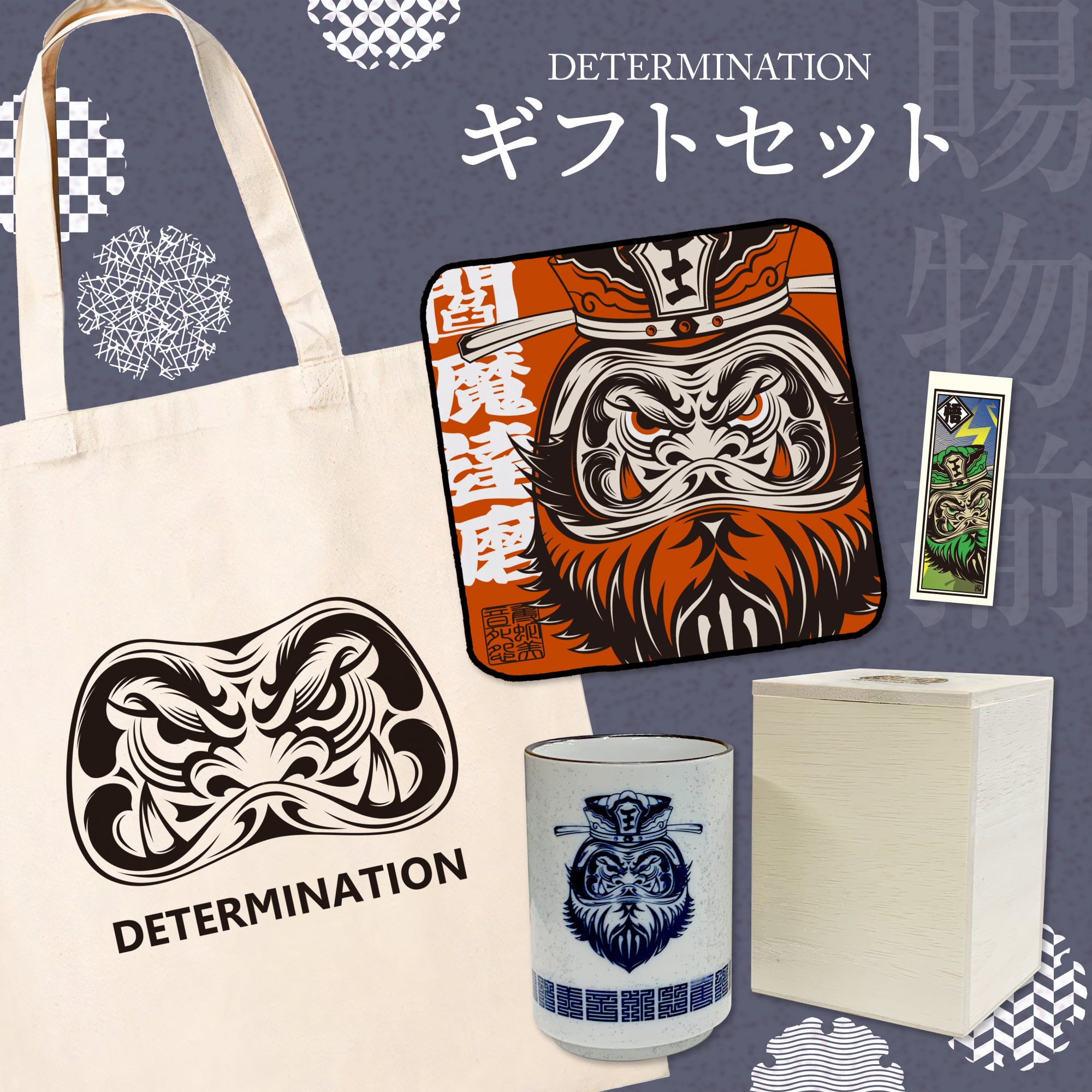 閻魔達磨ギフトセット|湯呑(木箱入) ミニタオル ラバーキーホルダーステッカー トートバッグ【TIKTOK】