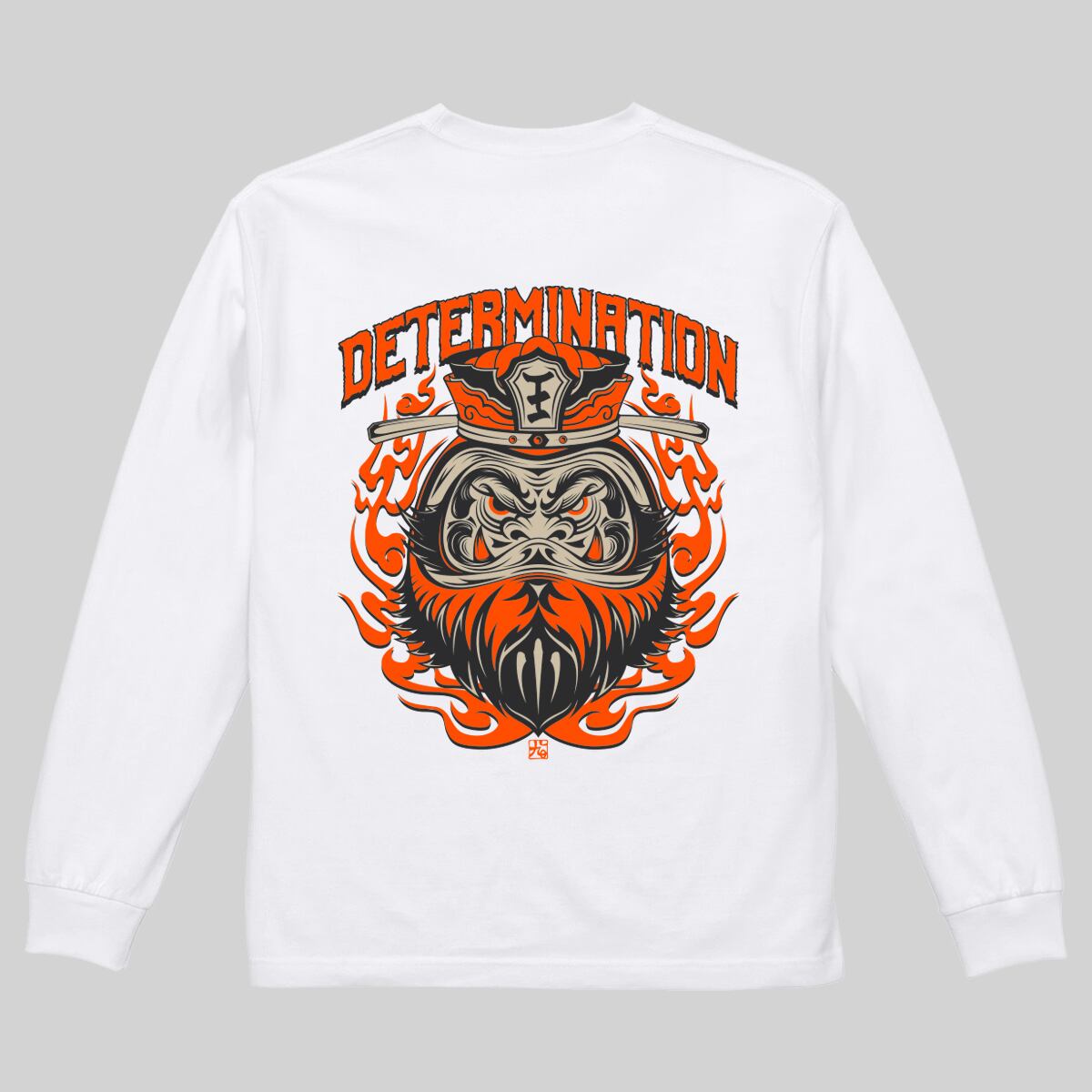 閻王バックプリントロングTシャツ 白×蛍光オレンジ