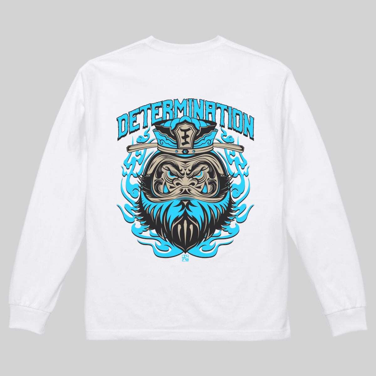 閻王バックプリントロングTシャツ 白×蛍光ブルー