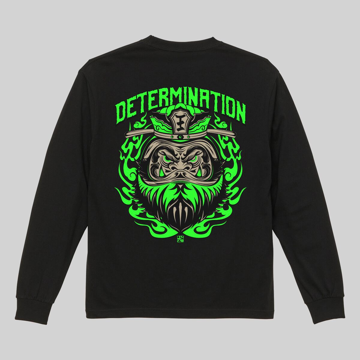 閻王バックプリントロングTシャツ 黒×蛍光グリーン