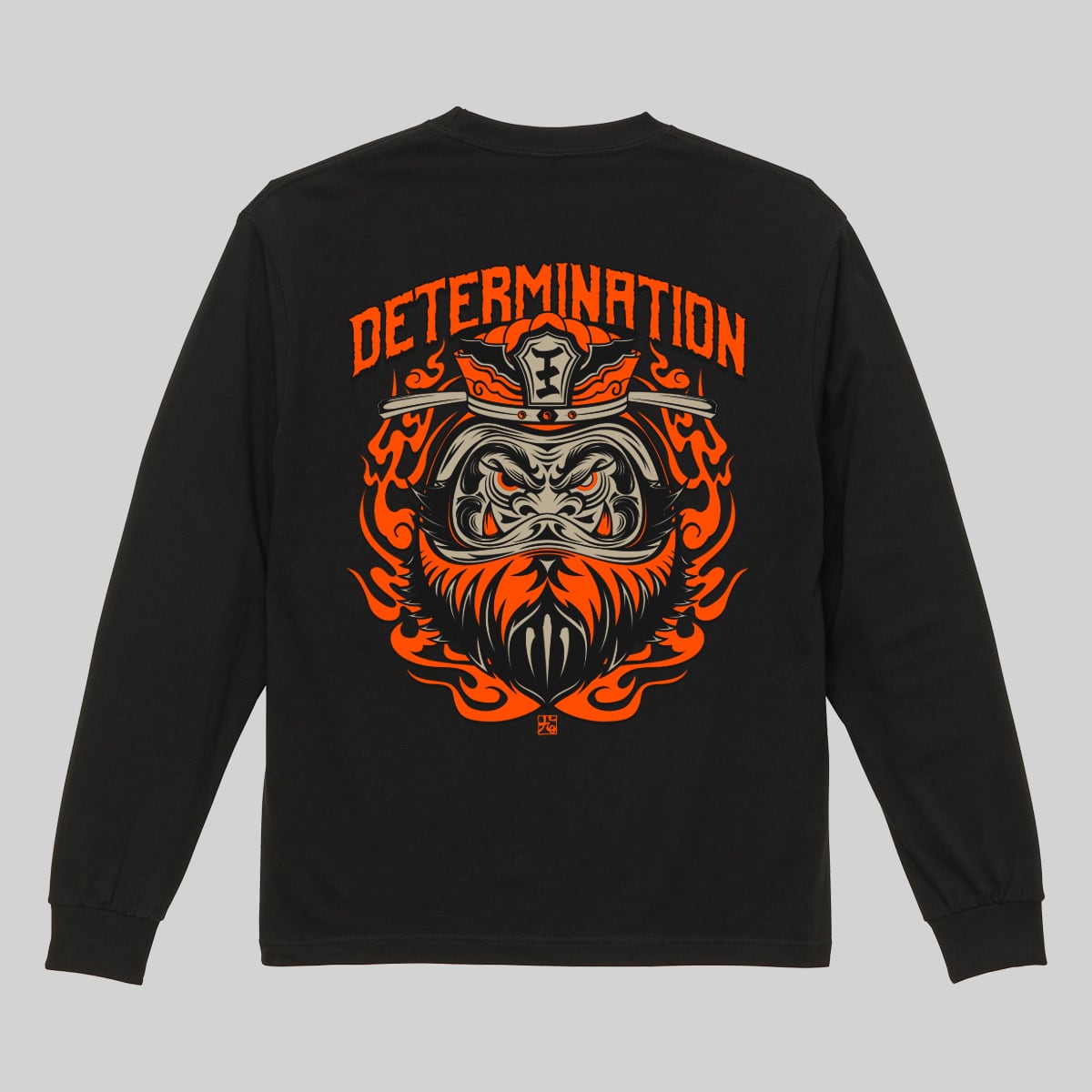 閻王バックプリントロングTシャツ 黒×蛍光オレンジ