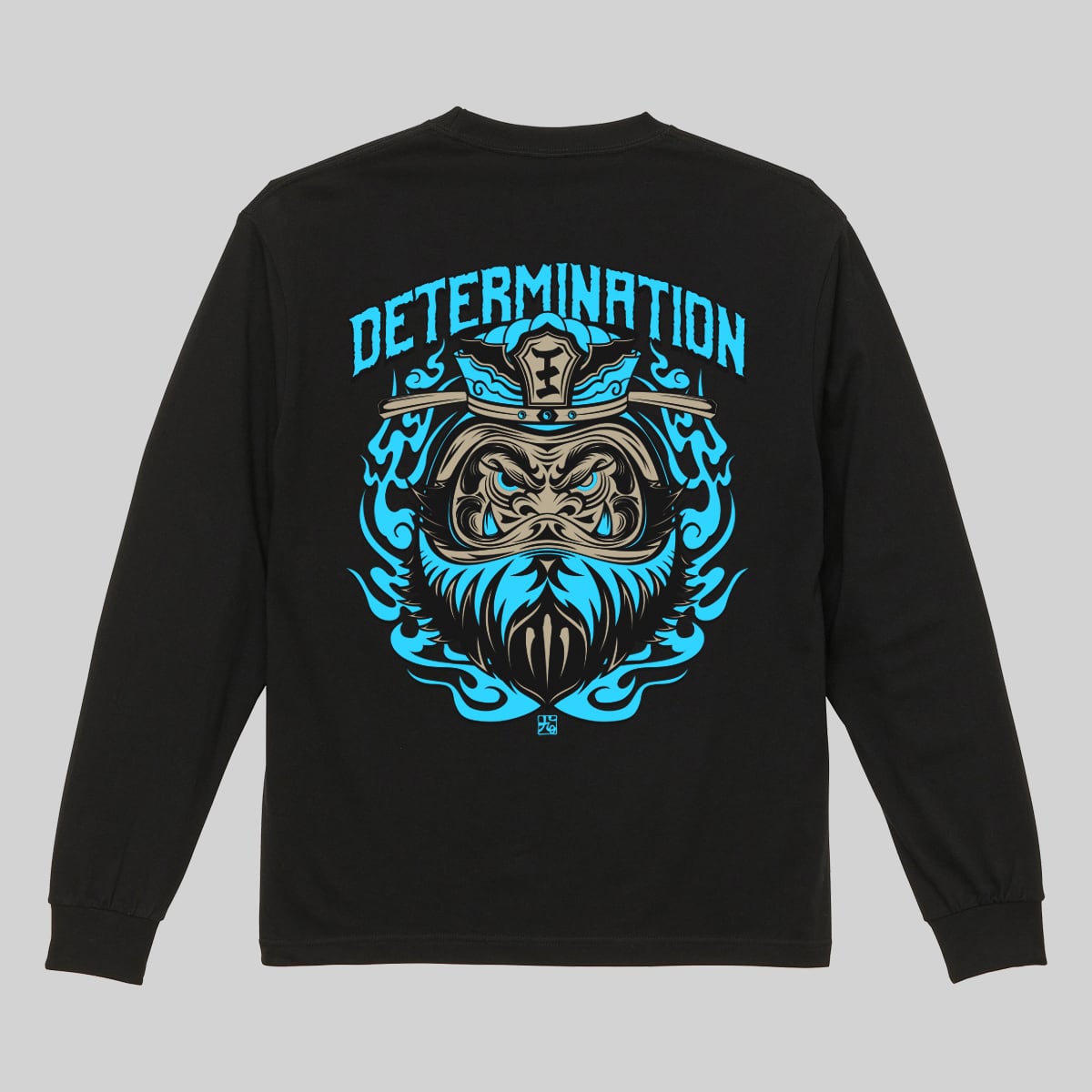 閻王バックプリントロングTシャツ 黒×蛍光ブルー